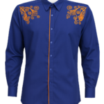 Step into style with Bulk African Spiral Flower Shirts, crafted from blue cotton with orange spiral embroidery for modern cultural flair. Ideal for boutiques and African fashion distributors, Bulk African Spiral Flower Shirts offer premium comfort, MOQ 10, customization, and worldwide delivery via info@africanscreative.com.