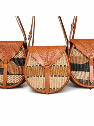 Showcase authentic African design with this handcrafted leather crossbody sling bag. Made from woven sisal and genuine leather, perfect for boutiques and gift stores. MOQ 10 pcs, worldwide delivery. Email info@africanscreative.com for custom orders