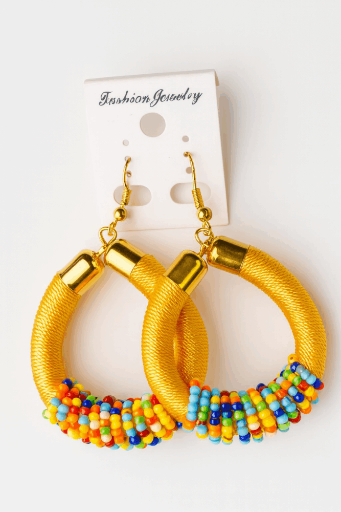 | Color | Bright Yellow hoops with Multi-colored bead accents |