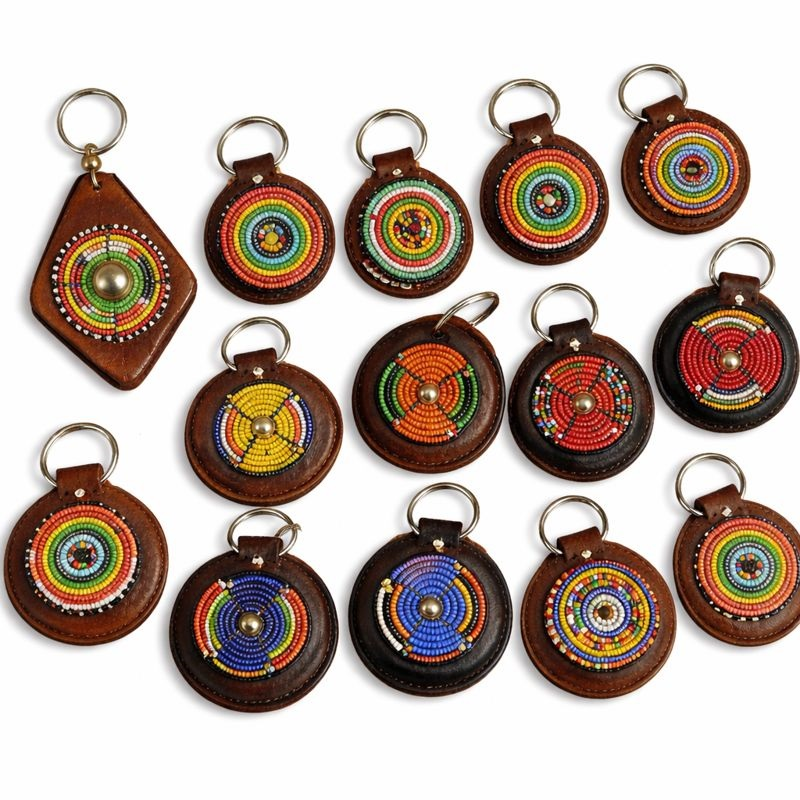 Showcase authentic African Beaded Keychains made from assorted materials. Wholesale MOQ 10 pcs per design with worldwide delivery available.