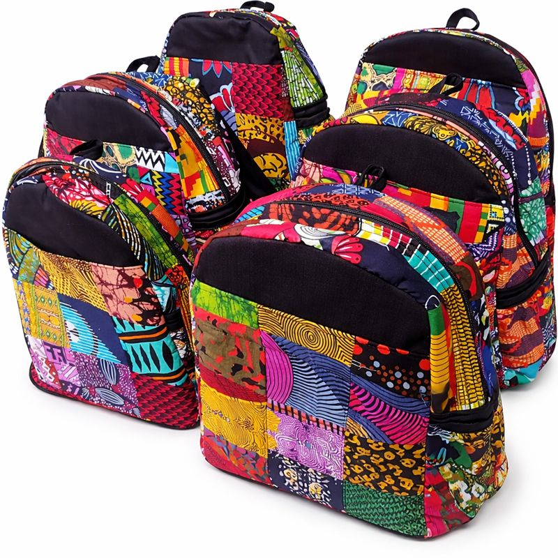 African-inspired patchwork backpacks crafted with authentic African print fabrics—ideal for fashion boutiques, museum gift shops, safari lodge stores, campus retailers, lifestyle accessory shops, festival vendors, and online diaspora-focused platforms.