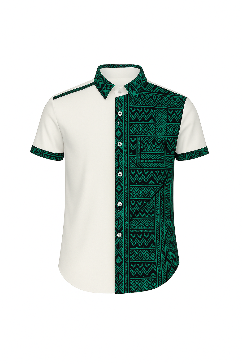 Introduce a standout piece to your store with our stylish men’s shirts featuring a half-panel African print design. The clean white base paired with vibrant Ankara, Kente, Mudcloth, or geometric prints creates a polished, fashionable look suitable for casual, semi-formal, and cultural events.