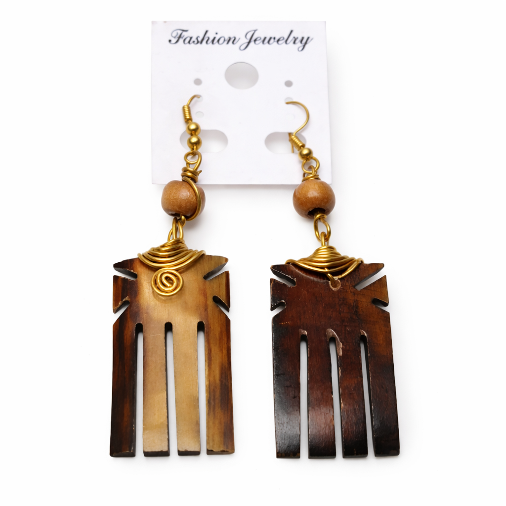 Wholesale Artisan African Wooden Comb Earrings – MOQ 100pairs