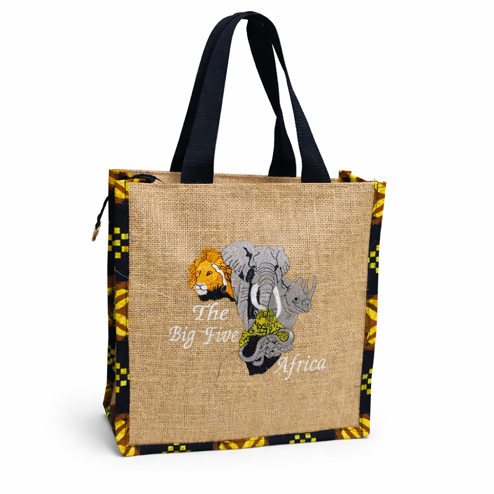 Order the Big Five Africa Jute Tote Bag in bulk and elevate your brand with authentic African craftsmanship.