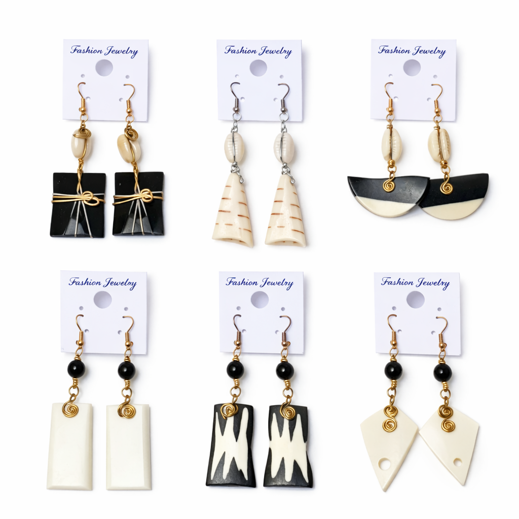 Handcrafted African Bone & Shell Statement Earrings – Wholesale Collection