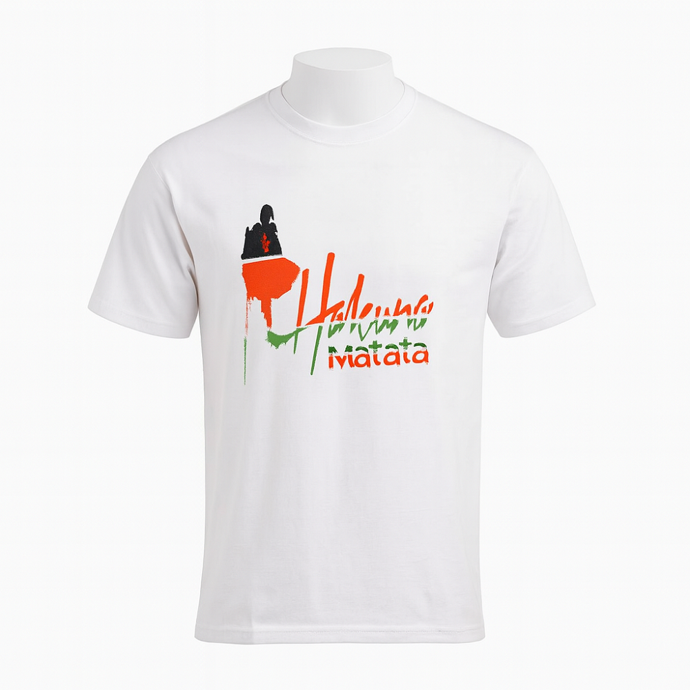 The t-shirts feature a bold “Hakuna Matata” text print overlaid with an artistic depiction of Kenya’s iconic scenery in flag-inspired colors. The graphic combines green for growth and peace, red for courage, black for unity, and white for harmony. The balanced placement of the artwork across the chest makes it visually appealing, allowing wearers to showcase patriotism proudly and stylishly.