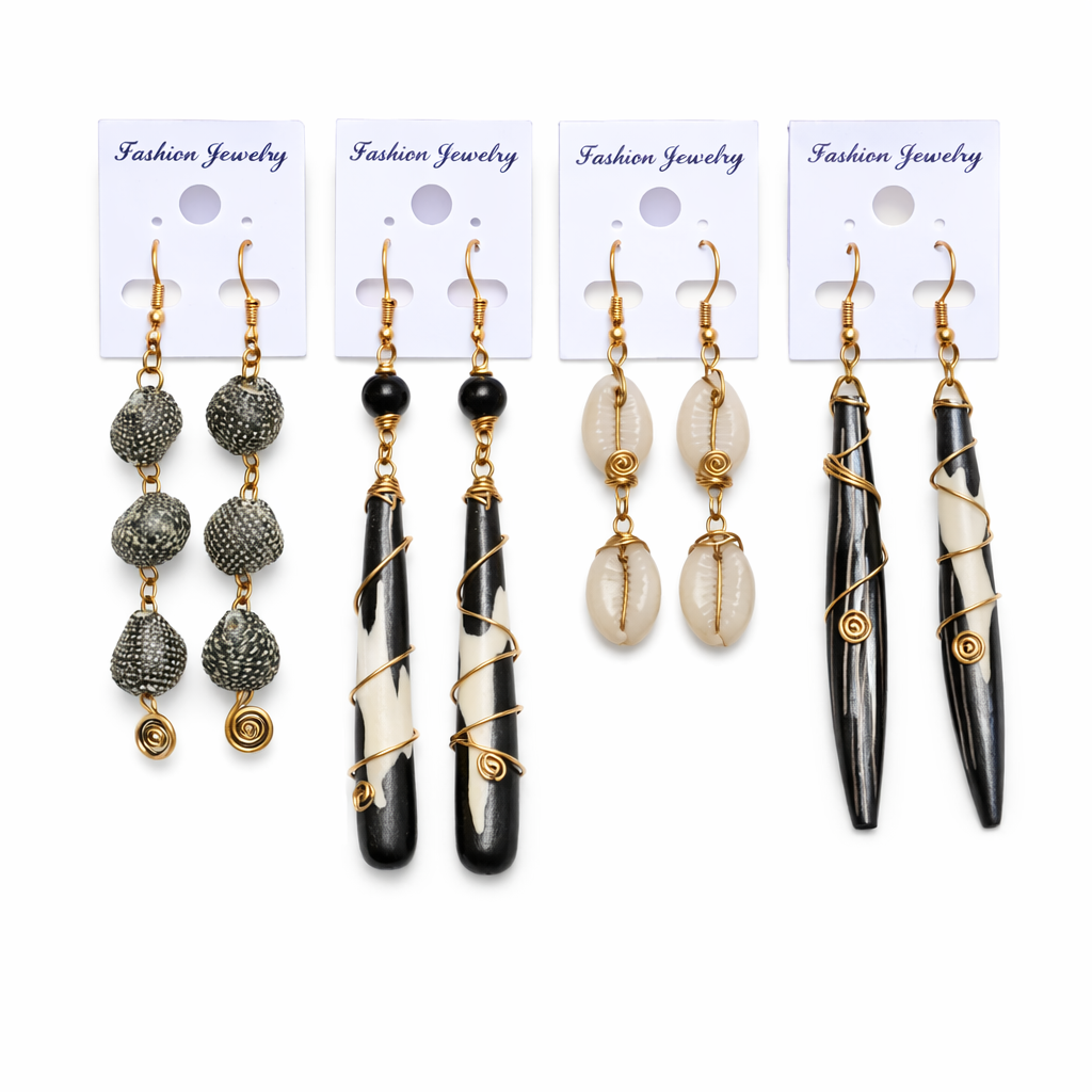 Bulk African Handmade Drop Earrings – Natural Shell & Horn Designs