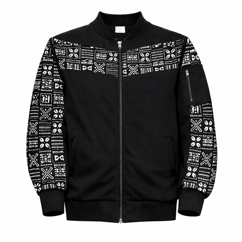 Elevate your wholesale collection with this premium Afro-inspired black bomber jacket, accented with authentic African prints and a clean plain back. Designed for unisex wear, retail resale, and corporate branding. Available in sizes S–XXL with MOQ 10 pieces, customization options, and worldwide delivery. Order in bulk today or request customization at info@africanscreative.com.