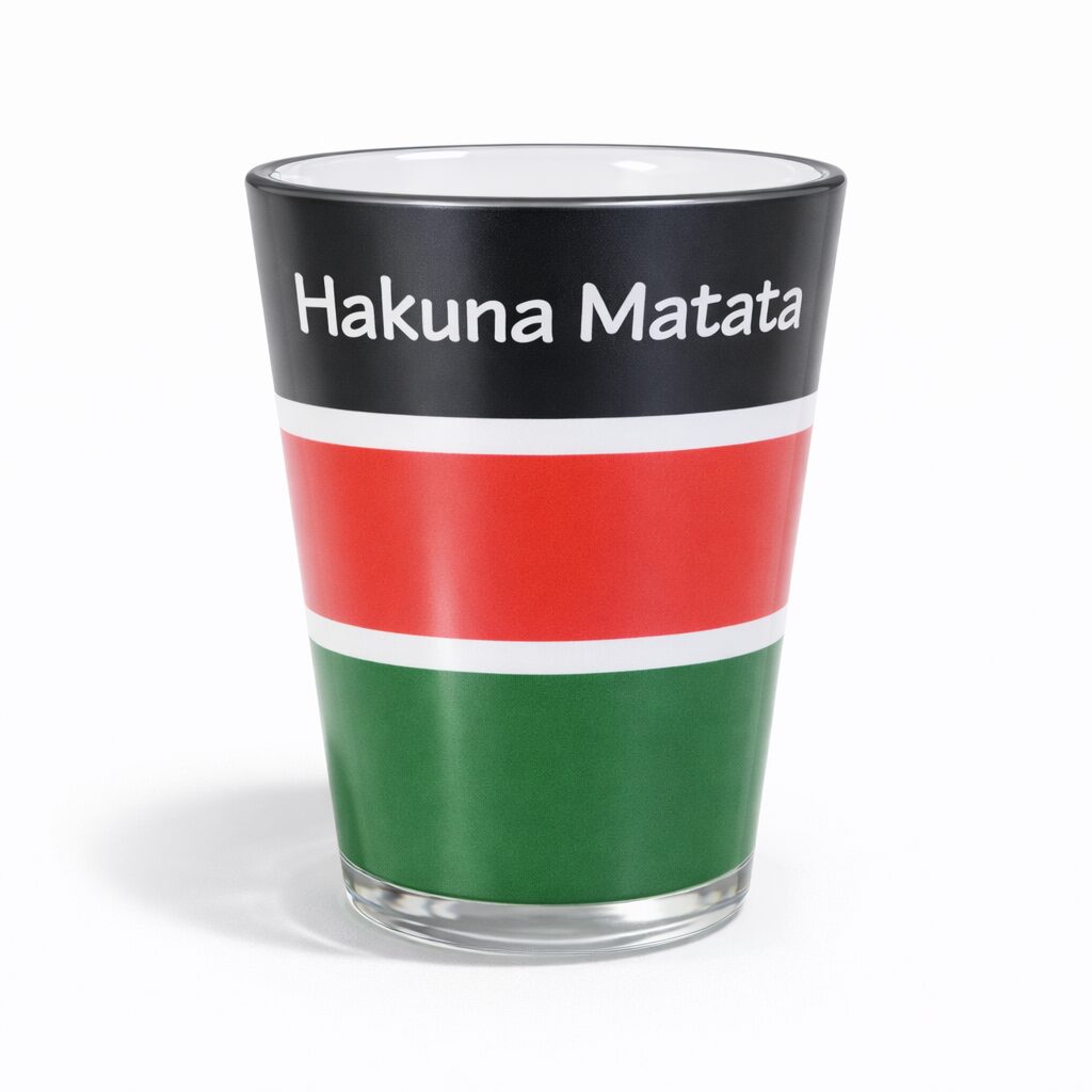 The Hakuna Matata Kenya Flag Souvenir Shot Glass blends the globally loved “Hakuna Matata” phrase with the bold Kenyan flag design, creating a culturally rich and highly marketable souvenir. Designed for both collectors and everyday use, the Hakuna Matata Kenya Flag Souvenir Shot Glass offers strong visual appeal and emotional connection for travelers and gift buyers.