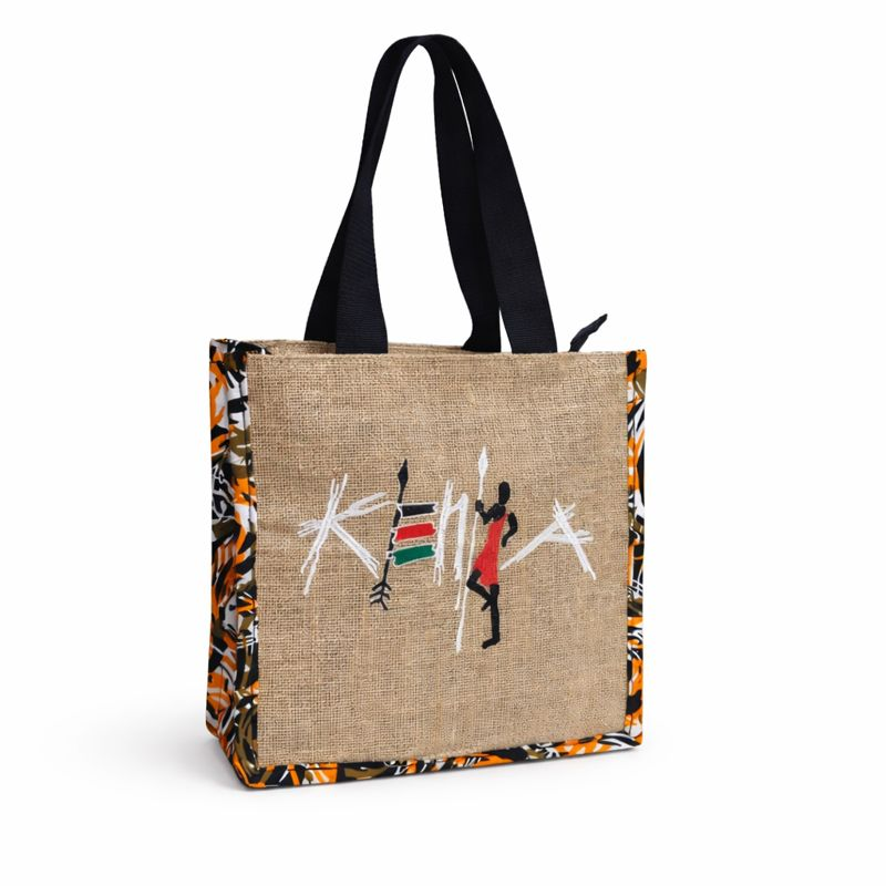 Wholesale Kenya Jute Tote Bag featuring authentic African design—ideal for retail, gifts & corporate branding. MOQ 10pcs, worldwide delivery. Customize via info@africanscreative.com