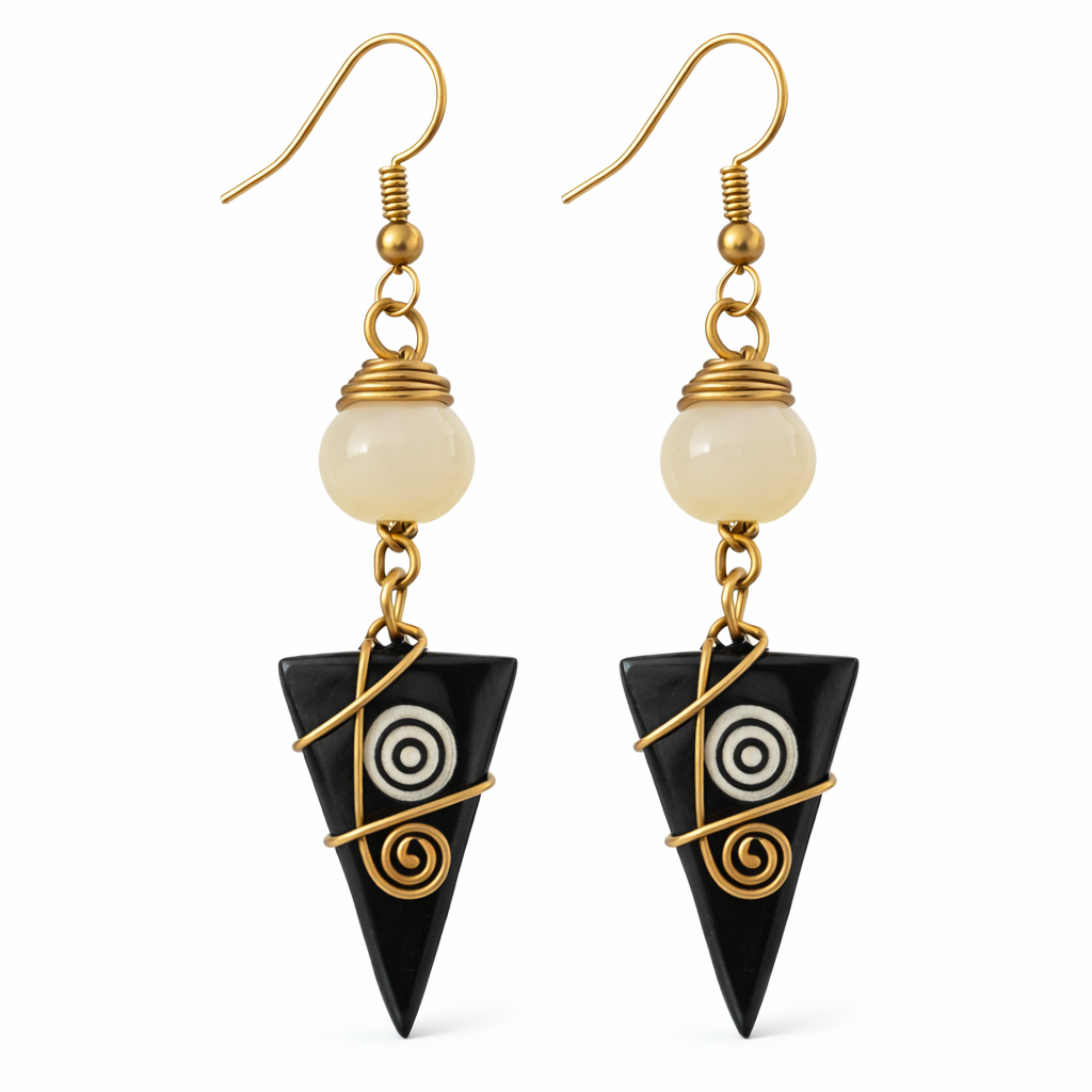 Wholesale African Triangle Drop Earrings – Handcrafted Brass & Resin Jewelry for Fashion, Museum & Gift Retail