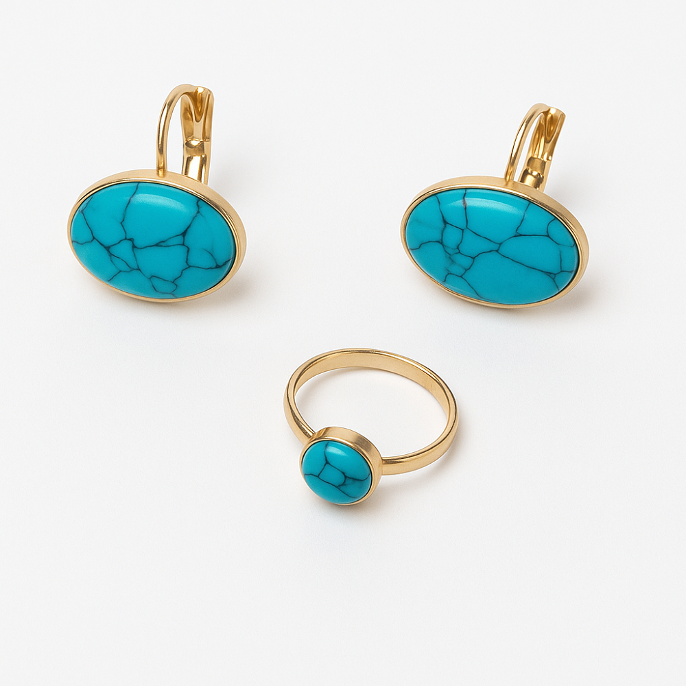 Introduce a vibrant, retail-ready statement ring to your wholesale jewelry collection. This gold-tone turquoise ring is designed for fashion-forward retailers seeking eye-catching gemstone pieces with strong sell-through potential and broad market appeal.