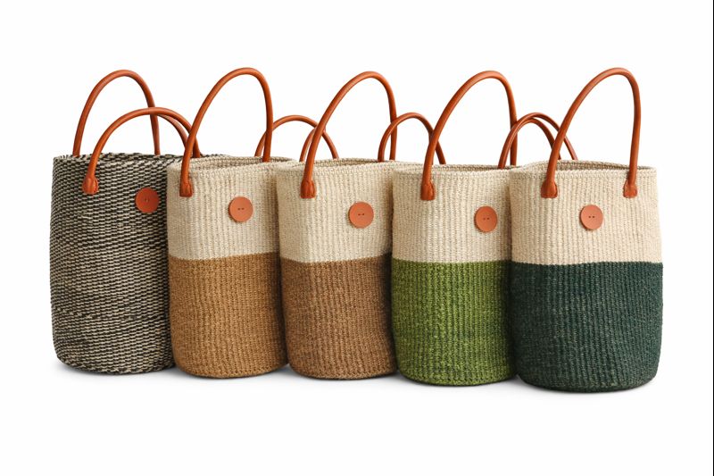 Shop our Wholesale African Kiondo Baskets with leather finishing in assorted colors. Perfect for storage and decor. Worldwide delivery available. Customize your order at info@africanscreative.com