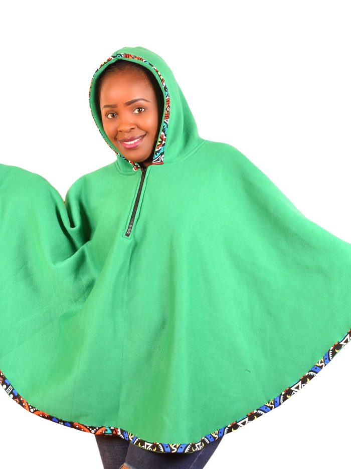 The Excellent craftsmanship of this poncho carries with it a classical essence. It is light green in color with beautiful blue, black, red, orange, and white tribal patterns. The patterns run across the full length of the lower Poncho’s skirt and the front hood arc. The hoodie feature of the poncho provides shielding of your hair from the rain in addition to keeping you warm. It can be rocked with jeans, leggings, casual pants, or even traditional pants. It’s multi-occasional, suitable for leisurewear, cultural events, or even dates. Order yours now, and you will have it delivered to you